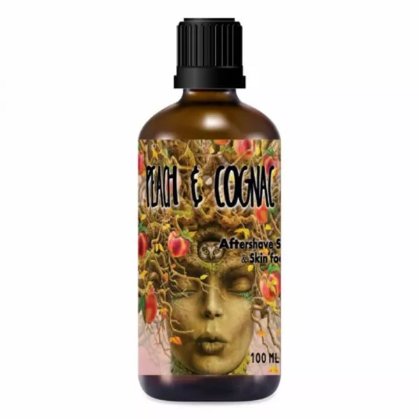 C'est ainsi qu'il a créer l'après rasage Peach & Cognac qui mélange des notes de pêches, de cognac, de bois et d'épices.