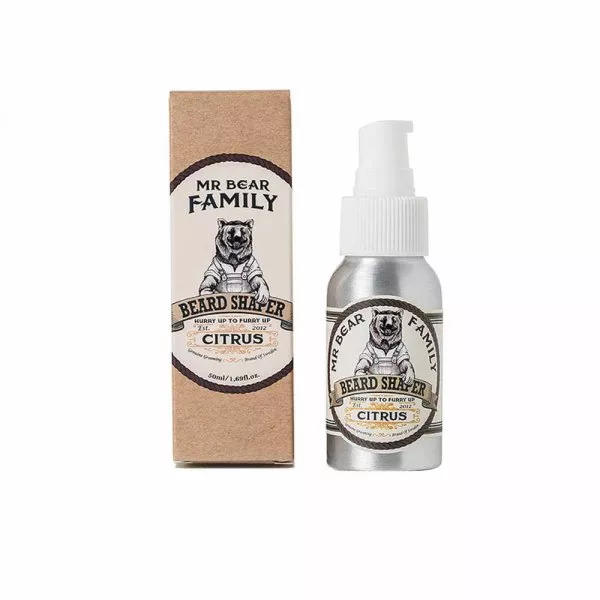 Baume à barbe Mr Bear Family Beard Shaper Citrus, une combinaison parfaite pour coiffer et hydrater votre barbe.