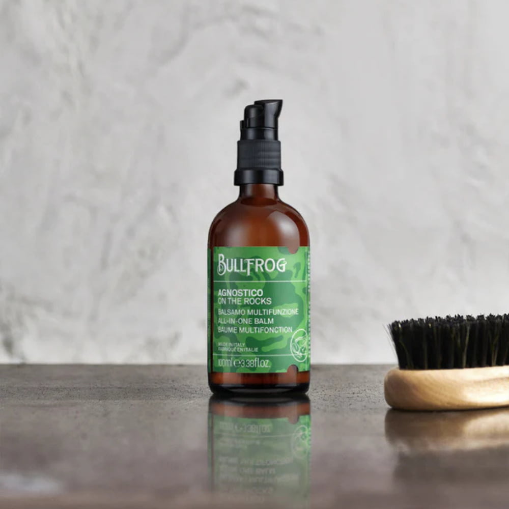 Le Baume Barbe & visage Bullfrog Agnostico On The Rocks 100 ml reprend la formule emblématique du célèbre baume Agnostico et l’habille d’un parfum audacieux, frais et ensoleillé. Pensé pour les hommes en quête de caractère et de polyvalence, il adoucit, discipline et hydrate aussi bien la barbe que la peau et les cheveux. Sa texture légère pénètre rapidement sans effet gras, tout en laissant derrière elle un sillage vibrant aux accents méditerranéens.