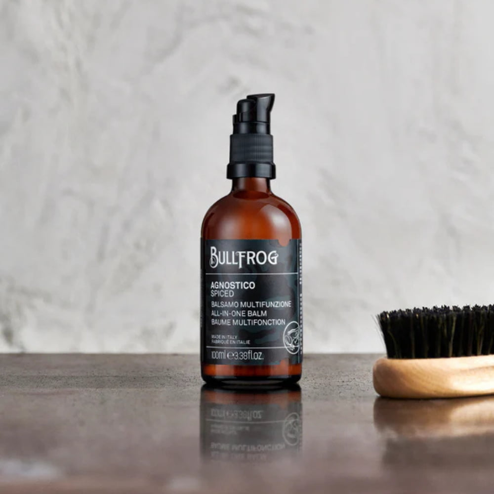 Le Baume Barbe et Visage Bullfrog Agnostico Spiced reprend la formule iconique du célèbre baume Agnostico et l’enrichit d’une signature olfactive piquante et épicée. Pensé pour les hommes qui assument leur singularité, ce soin polyvalent adoucit, discipline et hydrate tout en offrant une expérience sensorielle intense et raffinée. Sa texture légère pénètre rapidement sans laisser de film gras, permettant une utilisation quotidienne sur la barbe, le visage et même les cheveux.