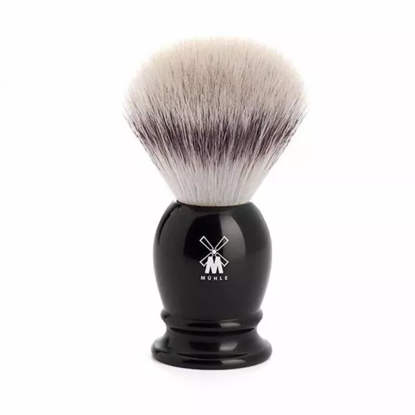 - le poil synthétique "Black Fibre" : grâce à sa couleur, sa douceur et sa qualité, cette fibre synthétique est la réponse durable aux questions de notre temps. Même si les poils synthétiques Black Fibre ressemblent aux poils de blaireau, ils sont plus robustes et ont une plus grande longévité. De plus, leurs pointes sont un peu plus douce que celles d'un poil naturel. Développée au sein de la manufacture Mühle, cette fibre permet de produire une crème de rasage particulièrement crémeuse. Son entretien demande beaucoup moins d’effort qu'un blaireau de rasage naturel.