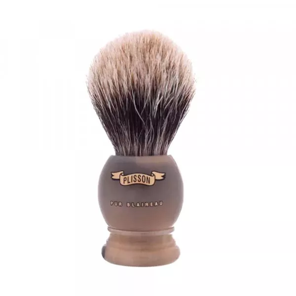 Blaireau Plisson Gaspard en corne avec pur poils de blaireau gris européen.
