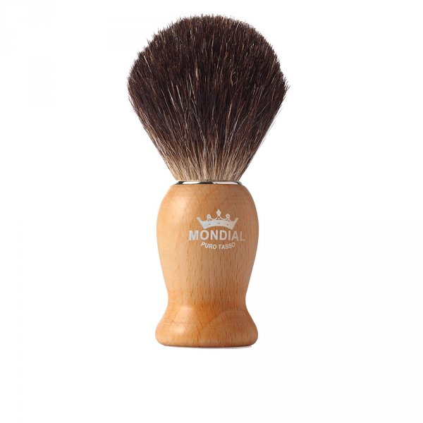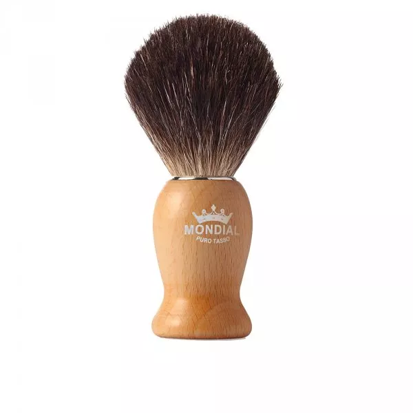 Blaireau rasage Mondial 1908 ligne Basic en bois de hêtre couleur érable et sa touffe en poil noir.