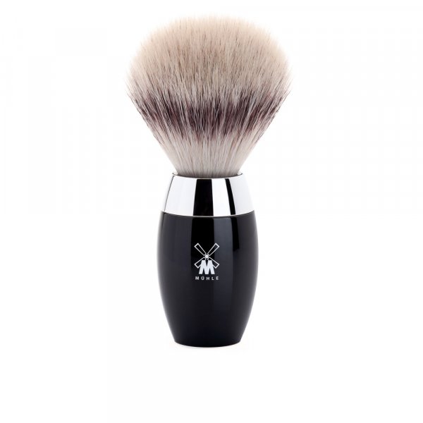 - le poil synthétique "Black Fibre" : grâce à sa couleur, sa douceur et sa qualité, cette fibre synthétique est la réponse durable aux questions de notre temps. Même si les poils synthétiques Black Fibre ressemblent aux poils de blaireau, ils sont plus robustes et ont une plus grande longévité. De plus, leurs pointes sont un peu plus douce que celles d'un poil naturel. Développée au sein de la manufacture Mühle, cette fibre permet de produire une crème de rasage particulièrement crémeuse. Son entretien demande beaucoup moins d’effort qu'un blaireau de rasage naturel.