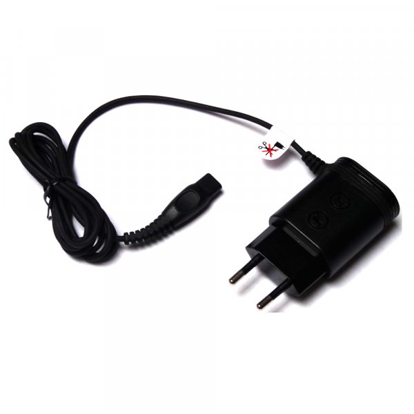 Chargeur tondeuse Philips comprenant la prise et le cordon de charge.