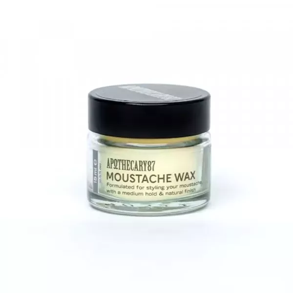 Cire à moustache Apothecary 87 dans un pot en verre de 15ml.