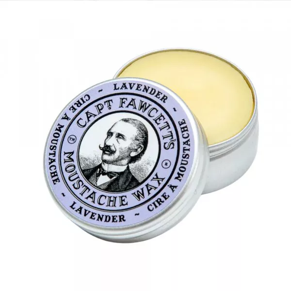 Cire à moustache Captain Fawcett Lavande conditionnée dans son pot en verre de 15ml.