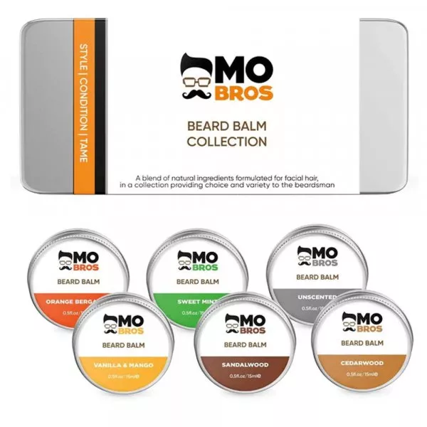 Coffret baumes à barbe Mo Bros, un kit de baumes à barbe délicieusement parfumés pour prendre soin de la barbe.