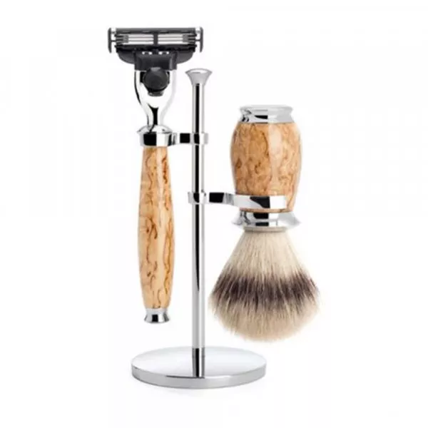 La marque allemande propose différents coffrets de rasage dans lesquels vous pouvez retrouvez : rasoir, blaireau de rasage et support. Certains coffrets intègrent même un bol à raser pour faire monter une mousse abondante à l'aide de votre blaireau de rasage. Le coffret de rasage homme Muhle Rytmo en bois de frêne est sans doute celui qui rencontre le plus de succès.