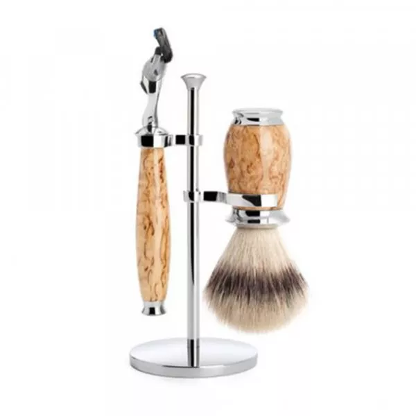 La marque allemande propose différents coffrets de rasage dans lesquels vous pouvez retrouvez : rasoir, blaireau de rasage et support. Certains coffrets intègrent même un bol à raser pour faire monter une mousse abondante à l'aide de votre blaireau de rasage. Le coffret de rasage homme Muhle Rytmo en bois de frêne est sans doute celui qui rencontre le plus de succès.