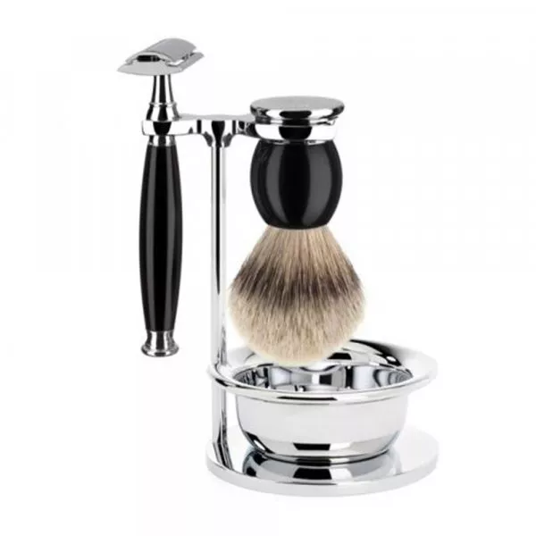 La marque allemande propose différents coffrets de rasage dans lesquels vous pouvez retrouvez : rasoir, blaireau de rasage et support. Certains coffrets intègrent même un bol à raser pour faire monter une mousse abondante à l'aide de votre blaireau de rasage. Le coffret de rasage homme Muhle Rytmo en bois de frêne est sans doute celui qui rencontre le plus de succès.