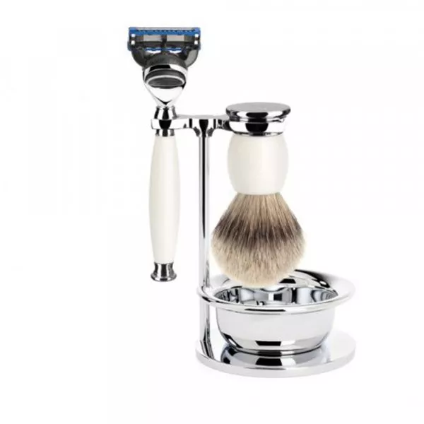 La marque allemande propose différents coffrets de rasage dans lesquels vous pouvez retrouvez : rasoir, blaireau de rasage et support. Certains coffrets intègrent même un bol à raser pour faire monter une mousse abondante à l'aide de votre blaireau de rasage. Le coffret de rasage homme Muhle Rytmo en bois de frêne est sans doute celui qui rencontre le plus de succès.