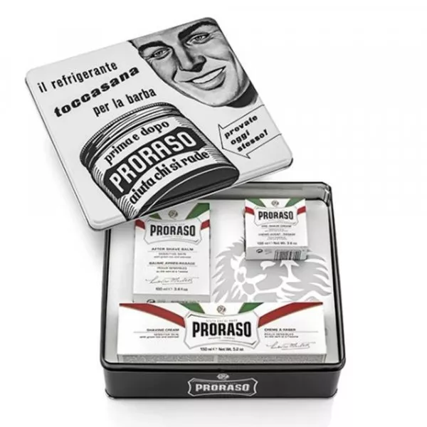 Proraso propose également des coffrets collectors dans des boîtes métalliques au look vintage reprenant les visuels publicitaires historiques de la marque pour découvrir chacune de ses gammes. Parmi ses coffrets on retrouve le coffret de rasage Proraso Gino (gamme verte), le coffret de rasage Proraso Primadopo (gamme rouge), le coffret de rasage Proraso Toccasana (gamme blanche).