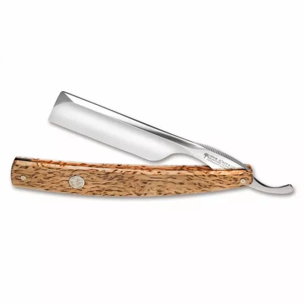 Parmi la collection de rasoirs coupe choux Böker on retrouve les célèbres modèles Classic Stainless, Classic Spanish, Schwarzgold, Edelweiss, ou encore le coupe choux Celebrated Wenge. Böker propose également la shavette Barberette pro et des accessoires pour l'entretien des lames de rasoir comme l'huile de camélia.