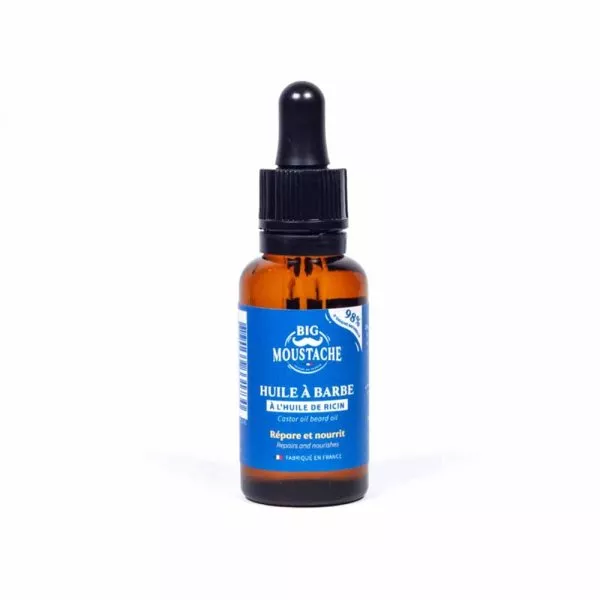 Big Moustache met à votre disposition une huile à barbe fabriquée en France et à 98% d’ingrédients d’origine naturelle.