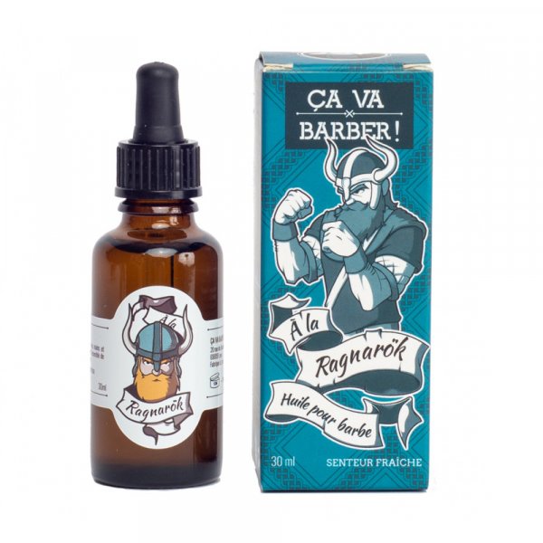 Huile à barbe Ca va Barber à la Ragnarök pour nourrir et délicatement parfumer votre barbe avec un parfum frais.