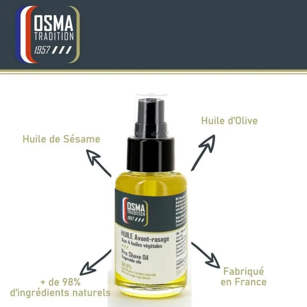 - Une huile avant rasage pour protéger votre peau avant le rasage.