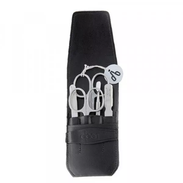 L'ensemble de ces outils est contenu dans une élégante pochette noire en cuir, pour les protéger et les emporter n'importe où avec vous.