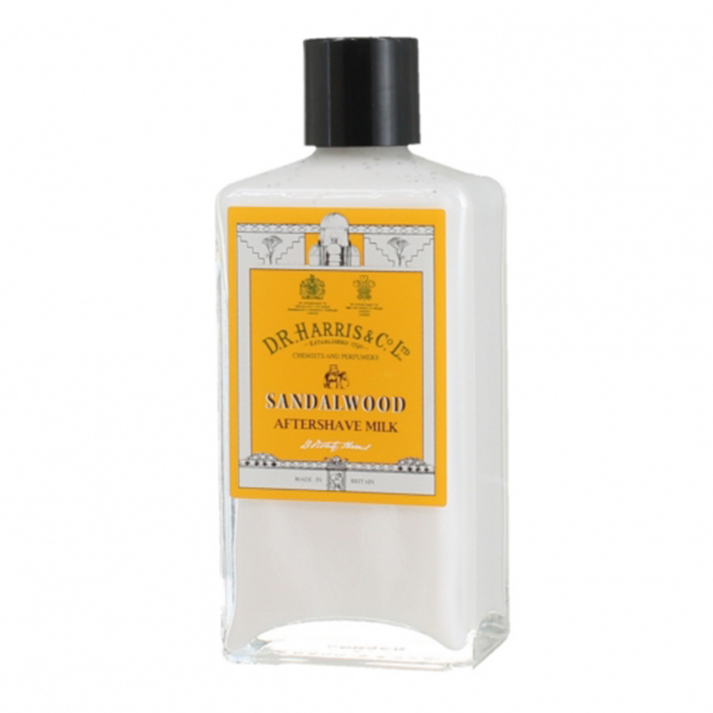 Ce lait après-rasage DR Harris Sandalwood légèrement parfumé au bois de santal est idéal comme hydratant.