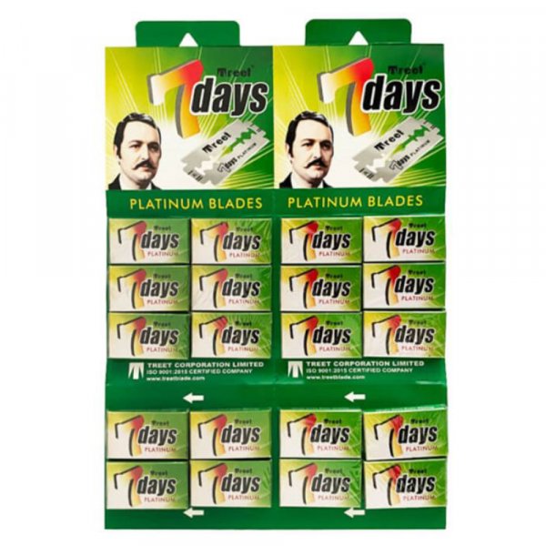 Lame de rasoir Treet 7 days Platinum x100 compatible avec tous les rasois de sécurité et shavette.