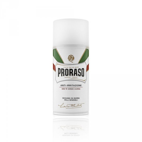 Mousse à raser Proraso Thé Vert en bombe blanche dans un format de 300ml.