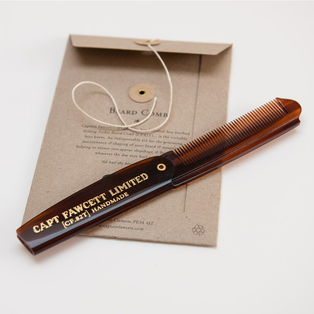 Peigne à barbe Captain Fawcett pliable fabriqué à la main en Angleterre.
