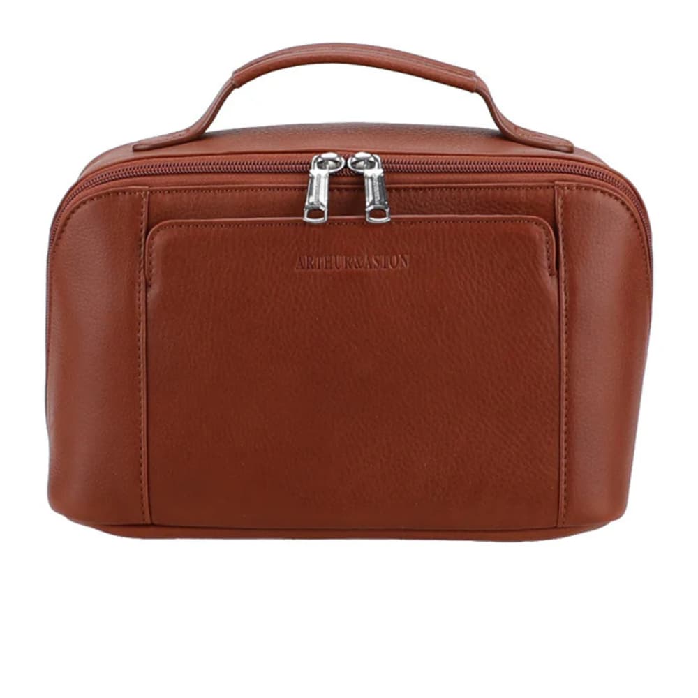 Pensé pour durer, le cuir pleine fleur semi-aniline offre un touché souple et une excellente résistance aux usages répétés. La doublure en polyester protège efficacement vos effets et se nettoie facilement. La poignée main assure un porté confortable, tandis que l’estampillage d’authenticité et les détails métalliques signent le savoir-faire Arthur & Aston. Résultat : un compagnon chic, fonctionnel et fiable, qui garde vos accessoires parfaitement ordonnés.