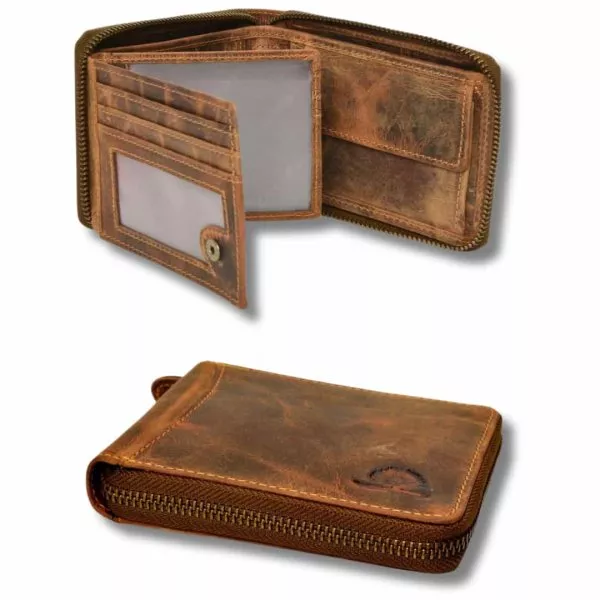 Ce portefeuille zippé en cuir de vachette véritable et naturel impressionne par sa fonctionnalité optimale.
