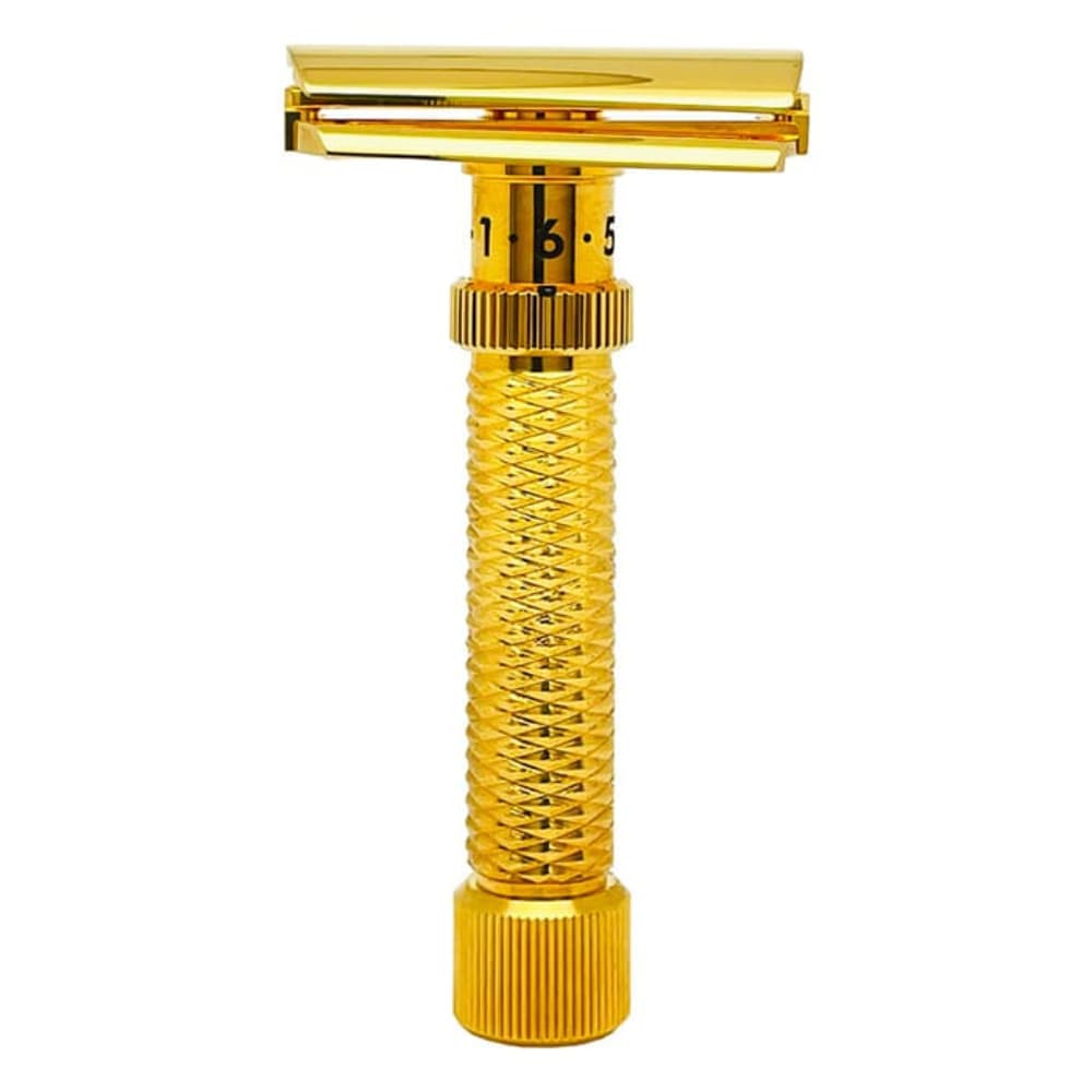 Grâce à son mécanisme d’ajustement infini, le Konsul Deluxe Or permet d’adapter l’exposition de la lame selon les besoins de chaque utilisateur. Il suffit de tourner la molette intégrée pour choisir un rasage doux, idéal pour les zones sensibles, ou une coupe plus agressive pour dompter une barbe épaisse. Compatible avec toutes les lames standards, il offre un très large éventail de combinaisons possibles pour une expérience véritablement personnalisée.