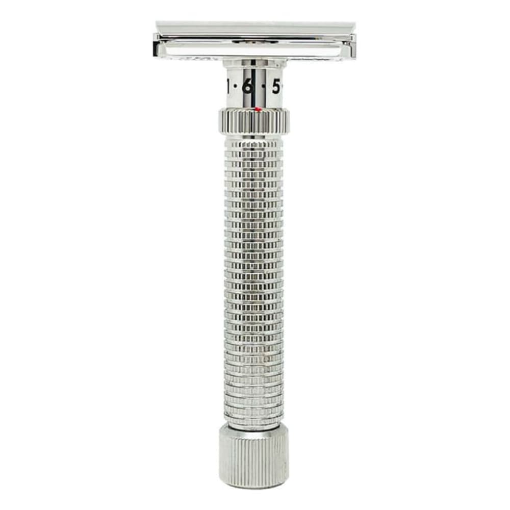 Conçu par des passionnés de rasage traditionnel, l’Ambassador XL Deluxe Rhodium permet un réglage continu de l’exposition de la lame. Une simple rotation de la molette intégrée permet d’adapter précisément le niveau d’agressivité du rasage. Ce système rend le rasoir aussi performant sur les peaux sensibles que sur les barbes les plus épaisses. Dès les premières passes, la lame glisse avec fluidité, laissant la peau lisse, douce et parfaitement nette.