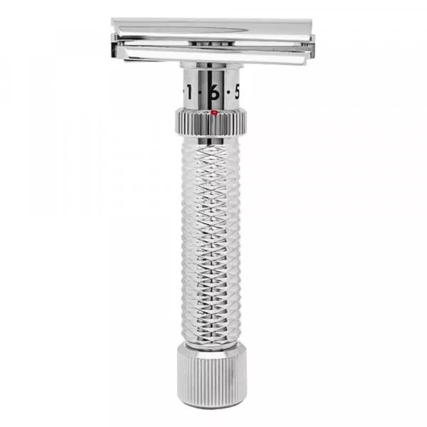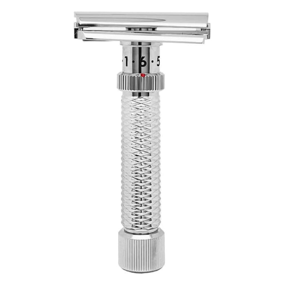 Grâce à son mécanisme d’ajustement continu, ce rasoir permet de moduler l’exposition de la lame en un geste. Une simple rotation de la molette intégrée suffit pour passer d’un rasage doux, idéal pour les zones délicates, à une coupe plus agressive pour dompter une barbe dense. Compatible avec toutes les lames de sûreté, il offre une grande liberté de personnalisation, permettant de trouver la combinaison idéale pour chaque utilisateur.