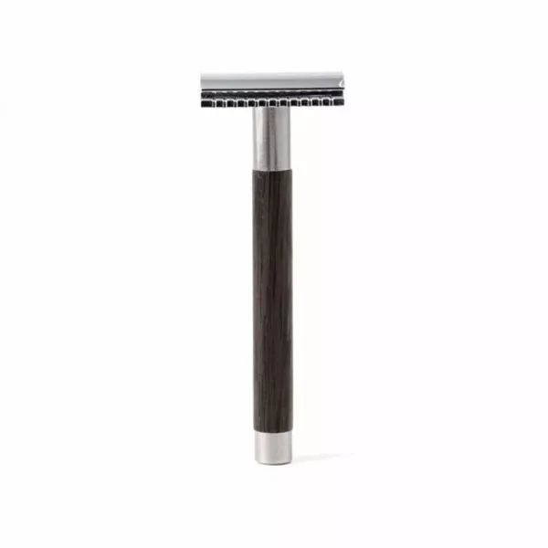 Issu d'une fabrication française, ce rasoir de sécurité réalisé à partir de bois de Morta, un bois noble et unique aux teintes très foncées, est l’accessoire idéal pour une salle de bain zéro déchet.