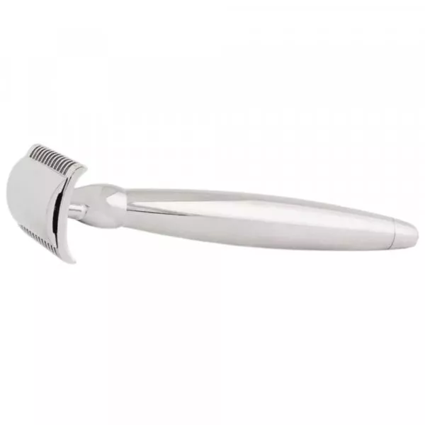 Doté d'une tête de sécurité à peigne fermé, ce rasoir de sûreté garantit un rasage sûr et sécurisé. Cette caractéristique le rend idéal pour les débutants du rasage traditionnel ainsi que pour les peaux sensibles, minimisant le risque de coupures tout en assurant un rasage de très près. Le poids relativement élevé du rasoir, contrebalancé par son équilibre parfait, contribue à une expérience de rasage sans effort, où la lame glisse sur la peau avec une précision inégalée.