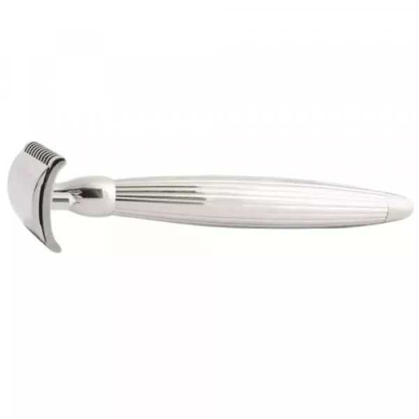 Décor Godron Unique : Le manche, orné de godrons droits élégamment réalisés par guillochage, confère au rasoir une allure sophistiquée et une texture agréable au toucher.