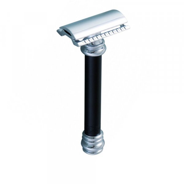 Rasoir de sûreté Merkur 38C Black composé d'une tête en acier et d'un manche de couleur noire.