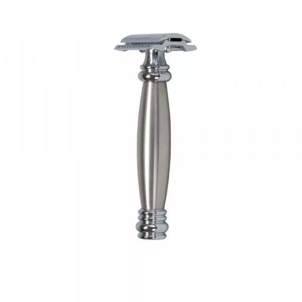 Rasoir de sureté Merkur 43C avec Manche en acier Inox, réputé pour être "lourd" (148g).