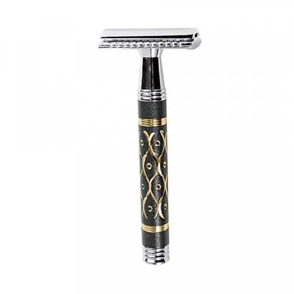 Rasoir de sureté Parker 65R avec un manche de style baroque de grande classe.