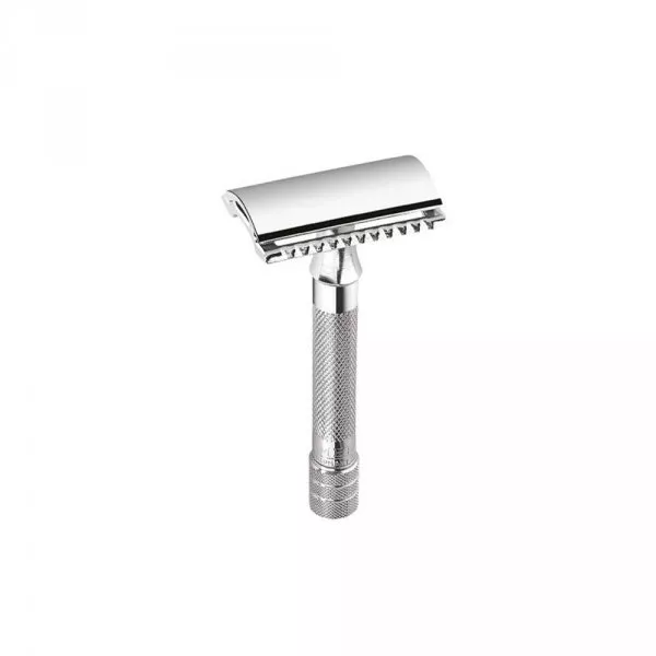 Rasoir Merkur peigne fermé avec une taille Medium de 8,5cm et un poids plutôt léger de 57grammes.