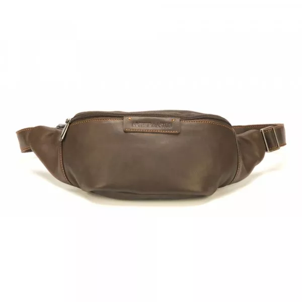 La banane homme Arthur & Aston Johany, un accessoire épuré, moderne et de qualité supérieure grâce à son en cuir de vachette couleur châtain.