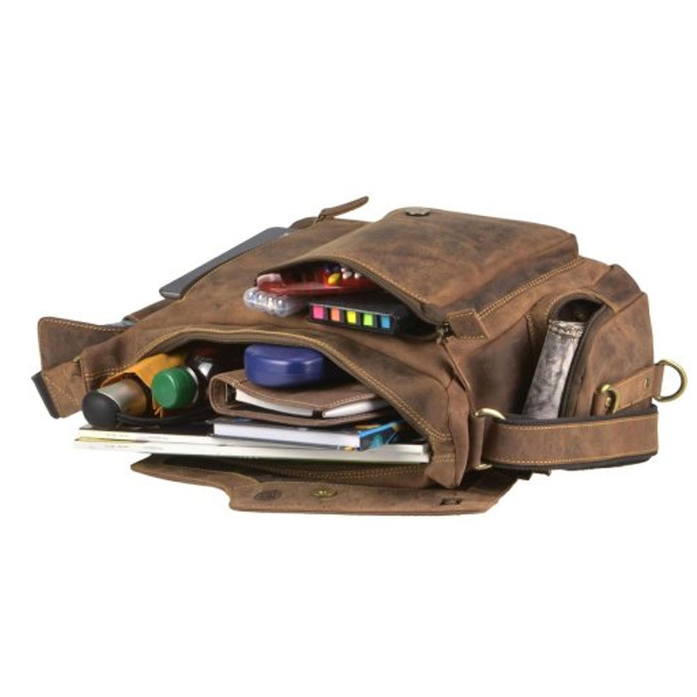 Le sac bandoulière Hunting Bag Greenburry offre une poche zippée chacune sur le rabat avant, sur le devant et au dos.
