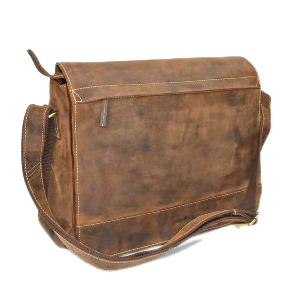 Le sac bandoulière XXL vintage Greenburry est en cuir de vachette marron à l'aspect usé, pour un style vintage !