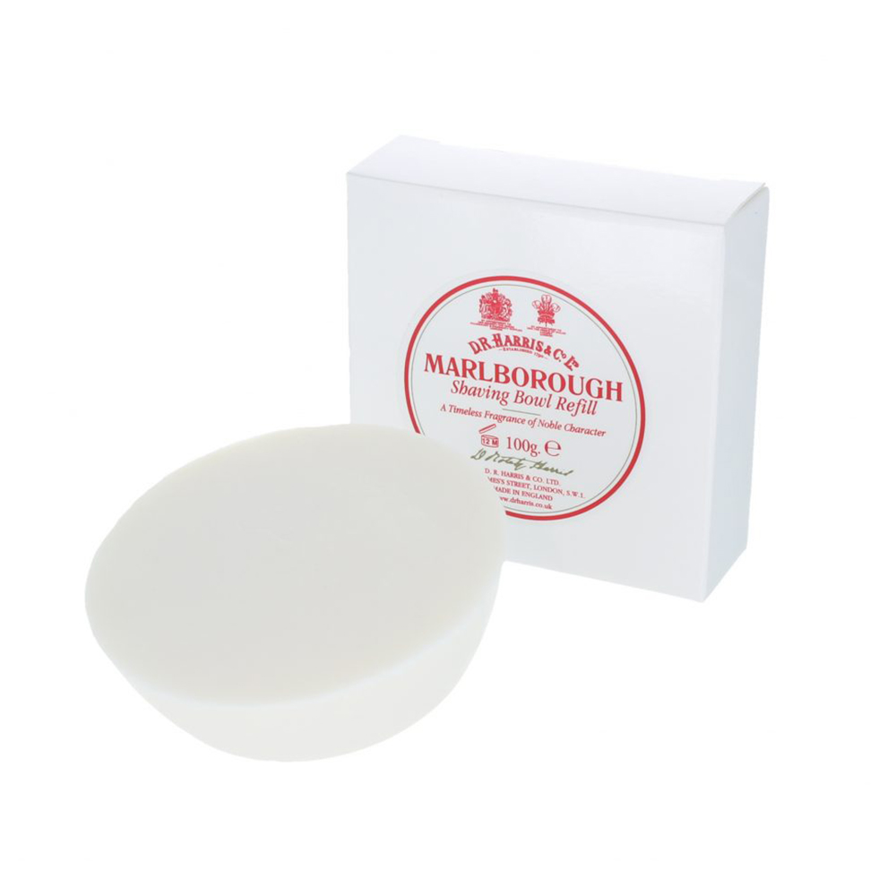 Le savon à barbe en recharge DR Harris Marlborough de diamètre 80mm convient aux savons à barbe DR Harris avec bol dans notre catalogue. Ce savon à barbe offre un parfum masculin de Marlborough, un arôme épicé prononcé de bois de cèdre et de bois de santal. Economique, ce savon à barbe en format 100g durera plusieurs mois.
