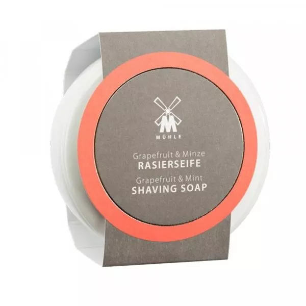 Ce savon de rasage délivre un parfum vivifiant et rafraichissant de pamplemousse est de menthe.