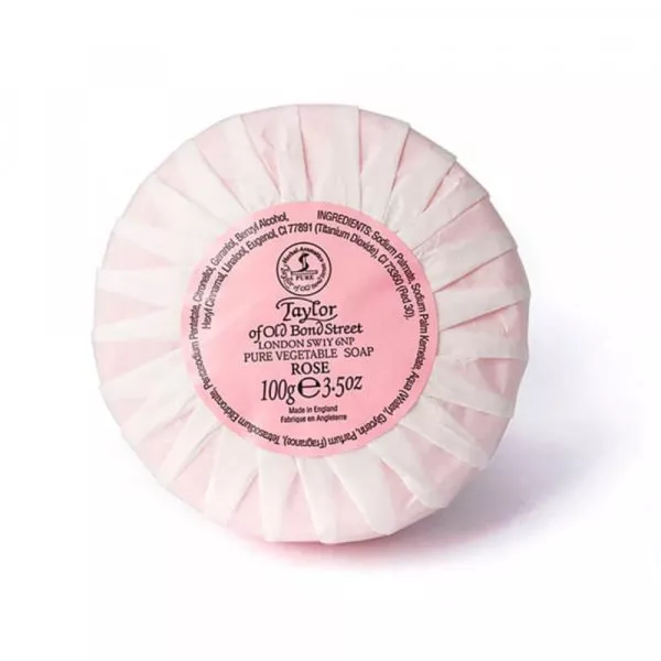 Le savon solide Taylor of Old Bond Street Rose, d’un poids de 100 g, est bien plus qu’un simple savon.