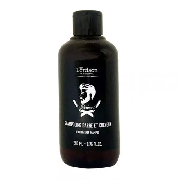 Le shampoing pour cheveux et barbe Lordson en format 200ml est adapté à tous les types de cheveux.