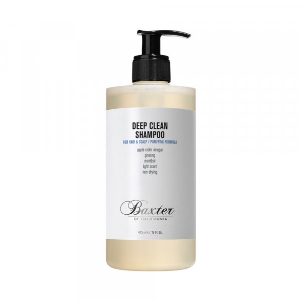 Shampoing homme Baxter of California Deep Clean Shampoo pour nettoyer les cheveux et le cuir chevelu.