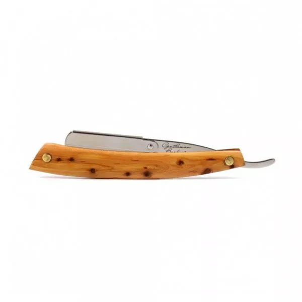 Découvrez ce rasoir shavette en bois de cade, aux tonalités claires aux lignes irrégulières qui est idéal pour dessiner ses contours de barbe avec précision ou pour un rasage de près intégral.