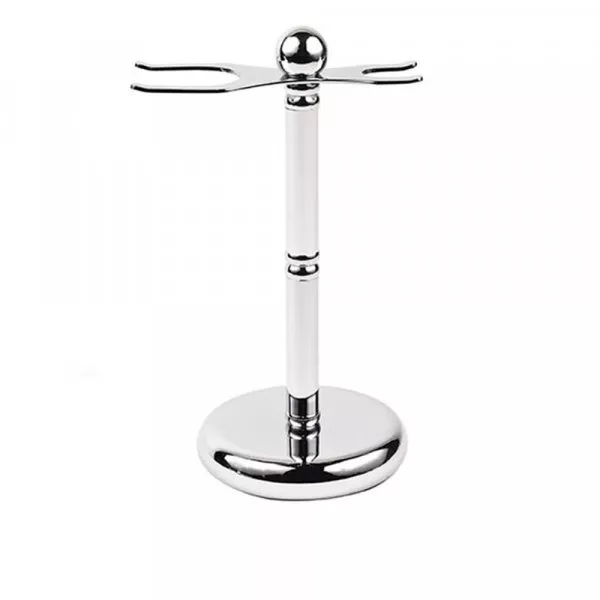 Support blaireau rasage Parker composé d’un emplacement pour le blaireau et un pour le rasoir.