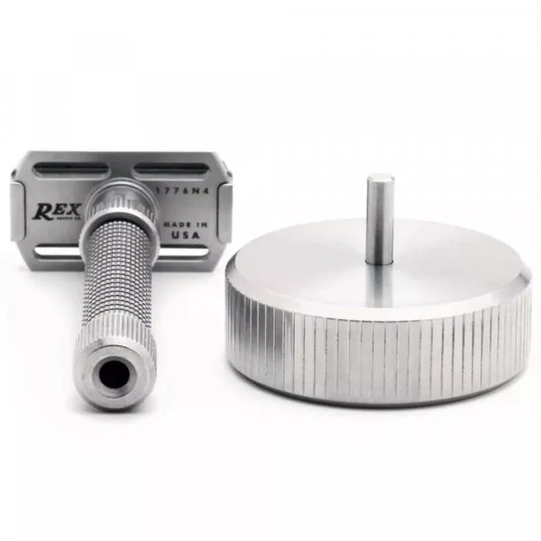 Ce support élégant reprend les codes esthétiques du célèbre rasoir Ambassador : moletage distinctif, finition usinée et lignes parfaitement équilibrées. L’ensemble formé par le rasoir et son support crée une harmonie visuelle unique, renforçant la dimension premium des produits Rex Supply Co. pour les amateurs de beaux objets et d’accessoires durables.