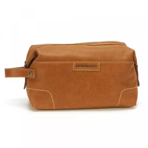Ce modèle de trousse de toilette Arthur & Aston est de couleur cognac, tendance et élégante, pour plaire à n'importe quel homme.
